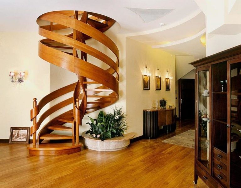 Винтовые лестницы считаются оптимальным вариантом для тех помещений, которые ограничены по площади. Конструкции очень компактны, в среднем диаметр такой лестницы варьируется от полутора до двух с половиной метров. К основным особенностям такой лестницы можно отнести следующие: